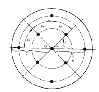3.9.2 除使用一次就能縮分出測定全水分所需數(shù)量的煤樣的縮分機外,煤樣破碎到規(guī)定粒度,稍加混合,攤平后用九點法(布點如圖3)縮分。全水分煤樣的制備要迅速。